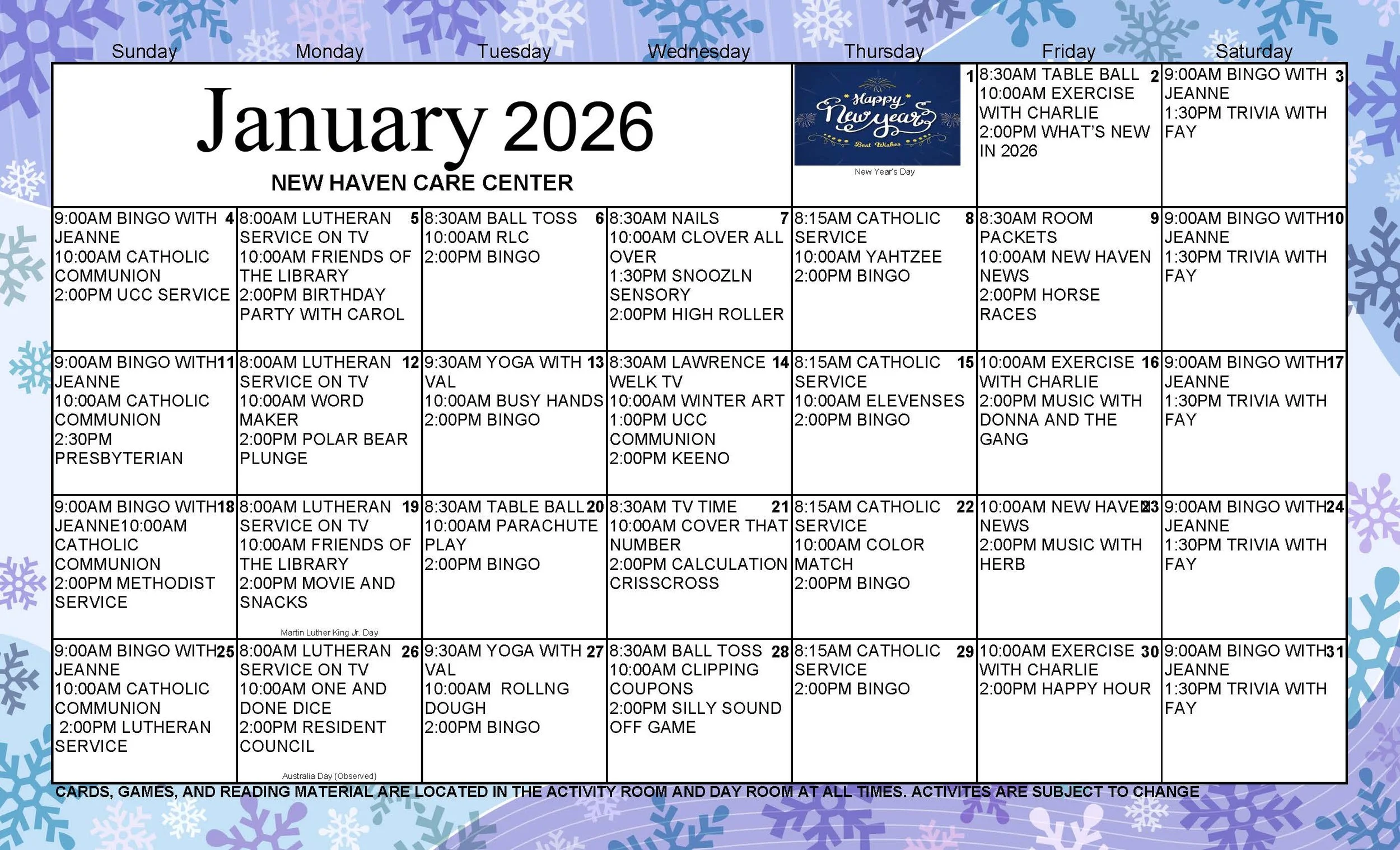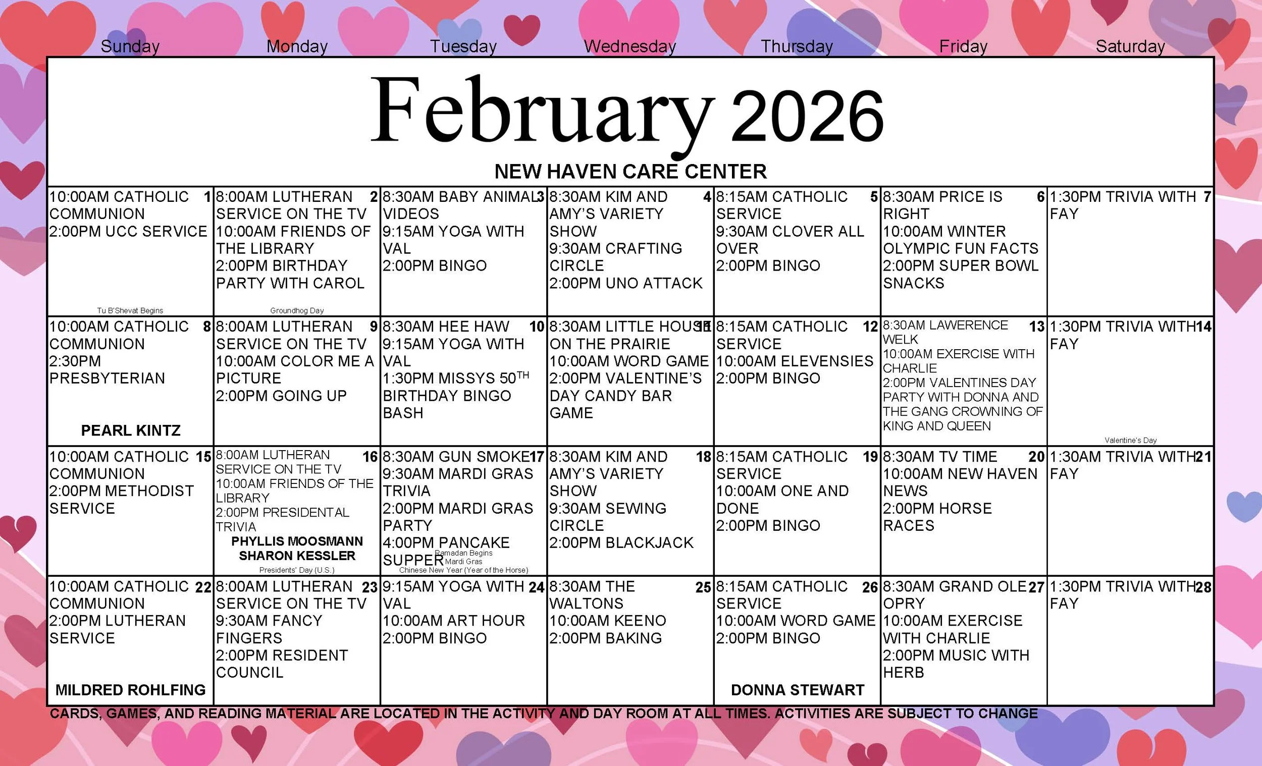 Resident Activity Schedule